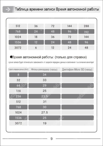 АБ 200мАч; время автономной работы от АБ 34 часа; источник зарядки USB 2.0 – 5V, 500 mA, важно!! запрещается использовать блоки быстрой для зарядки смартфонов, большая мощность прибор выйдет из строя!!!;